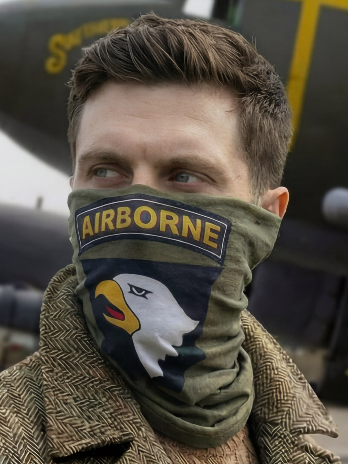« Mask » ou cache-cou US 101e Division Aéroportée. Doux et ultra respirant / 100% sans couture / 10 façons de porter / repousse l’humidité / SPF40 / résistant aux taches / contrôle des odeurs / protège contre le vent / aide à maintenir l’hydratation / séchage rapide.