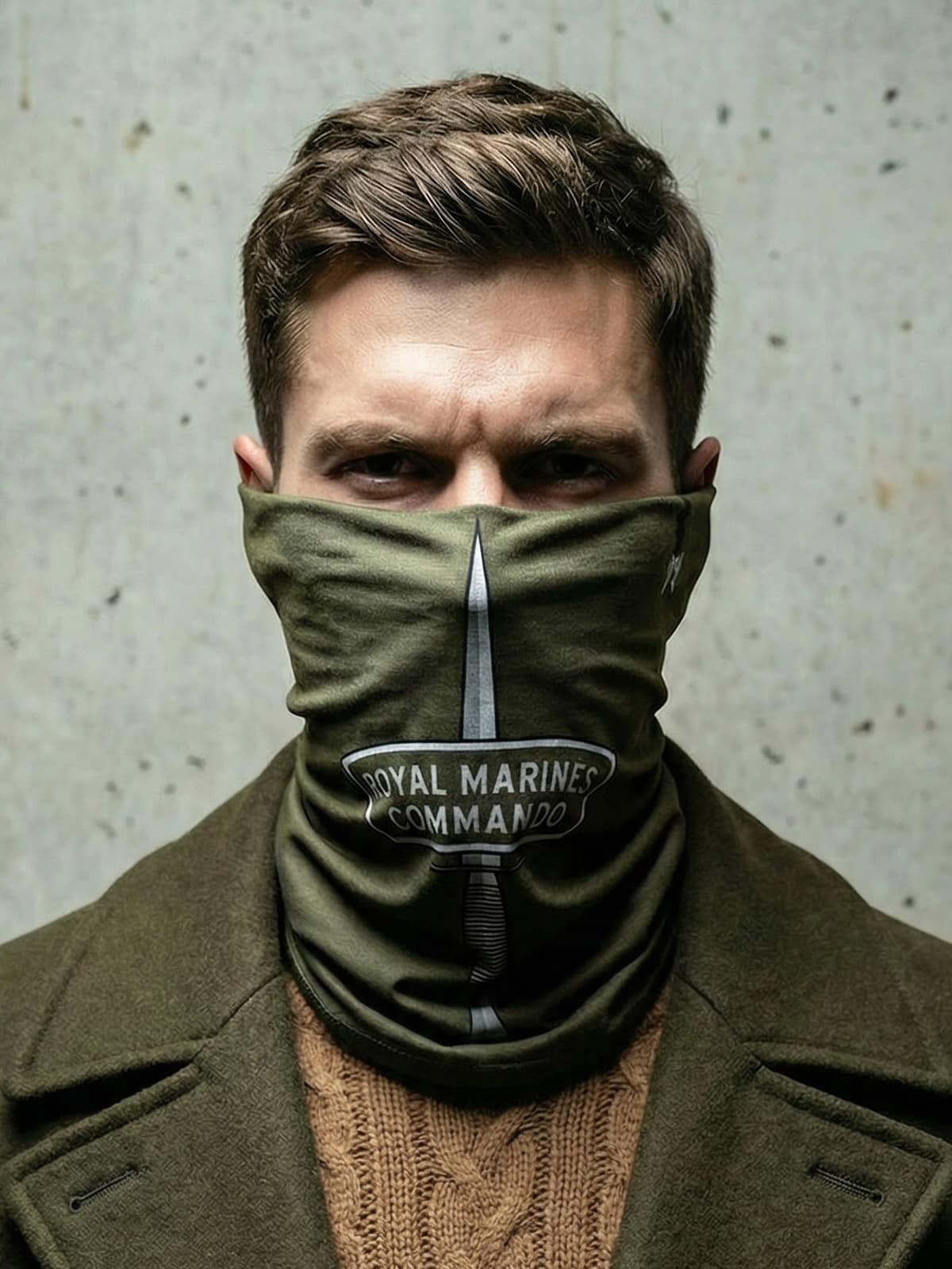 « Mask » ou cache-cou Royal Marines. Doux et ultra respirant / 100% sans couture / 10 façons de porter / repousse l’humidité / SPF40 / résistant aux taches / contrôle des odeurs / protège contre le vent / aide à maintenir l’hydratation / séchage rapide.